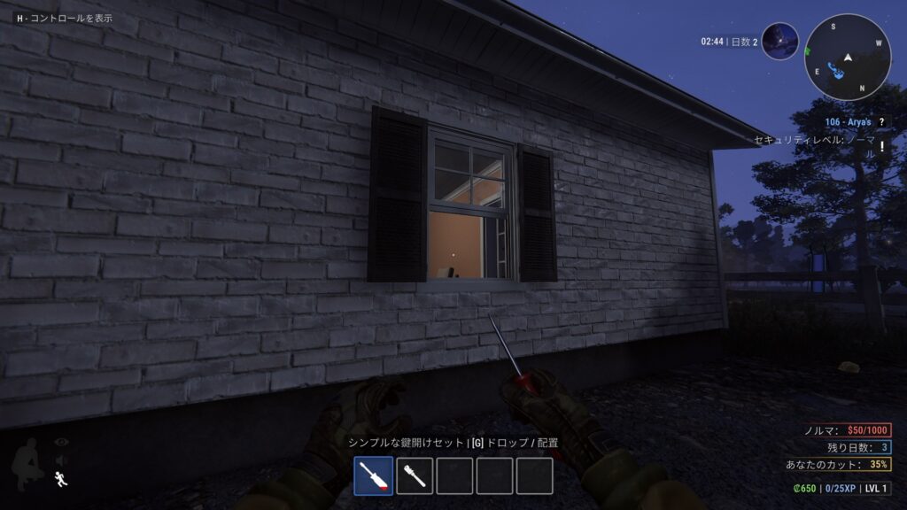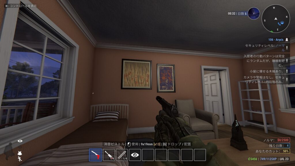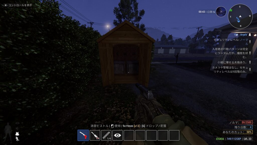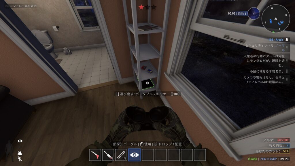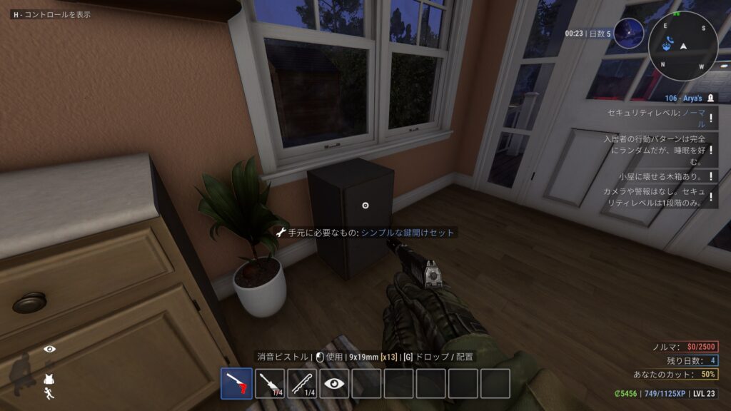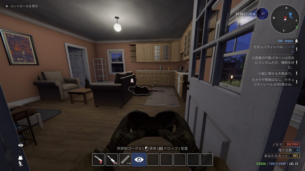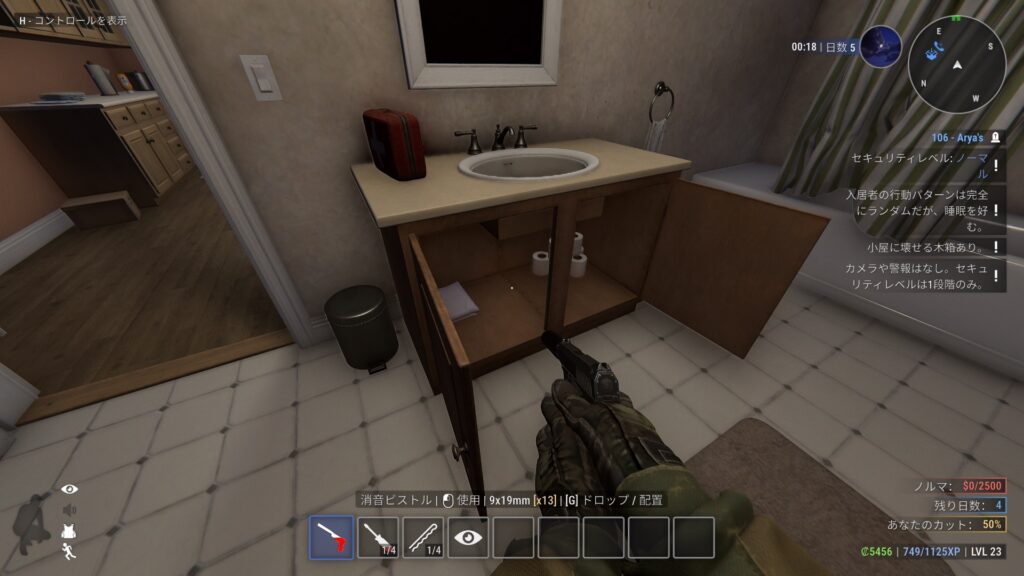 キッチンにいる場合は可能な行動が一番少なく裏庭の椅子のアイテム、トイレのアイテムのみになります。木箱は難易度、ゴールデン(耳)により、ばれる可能性があります。